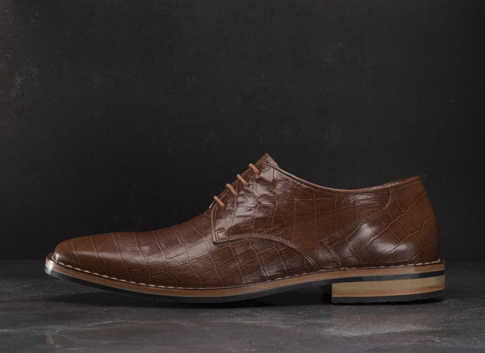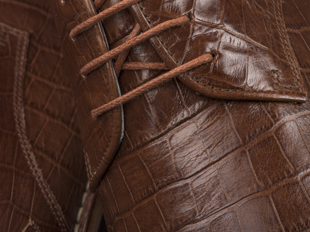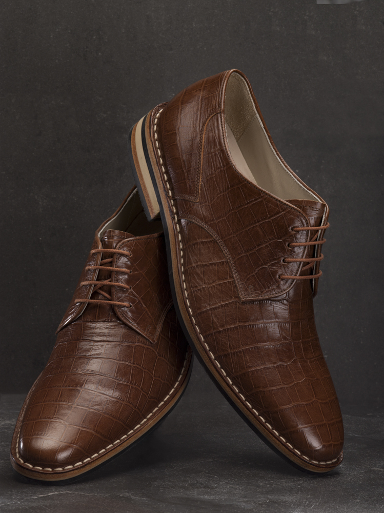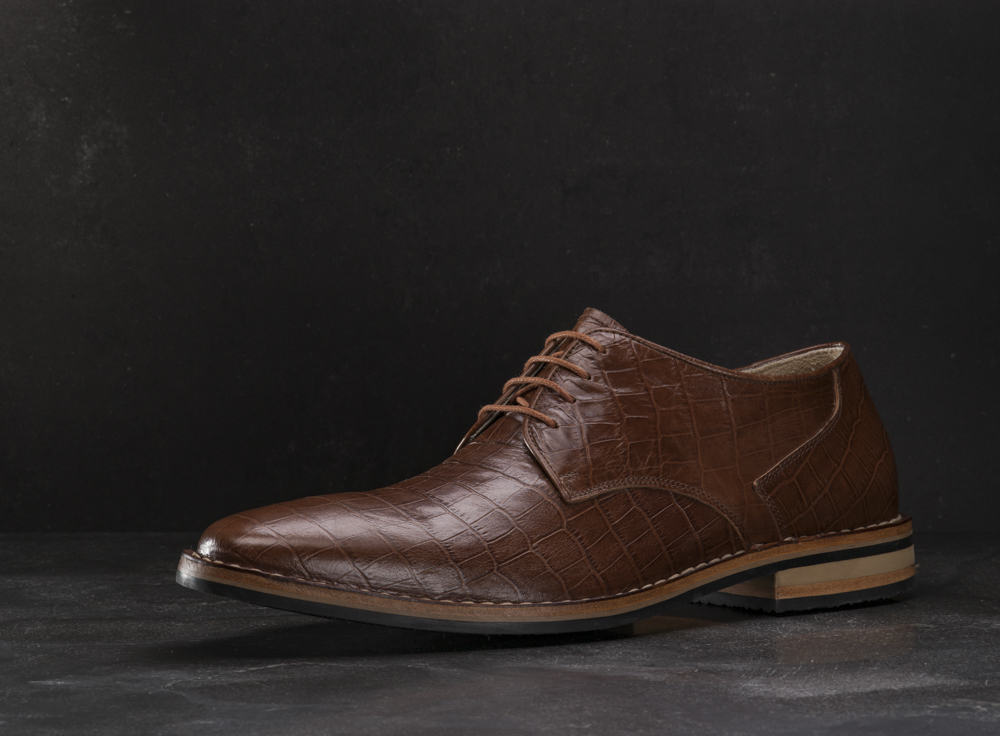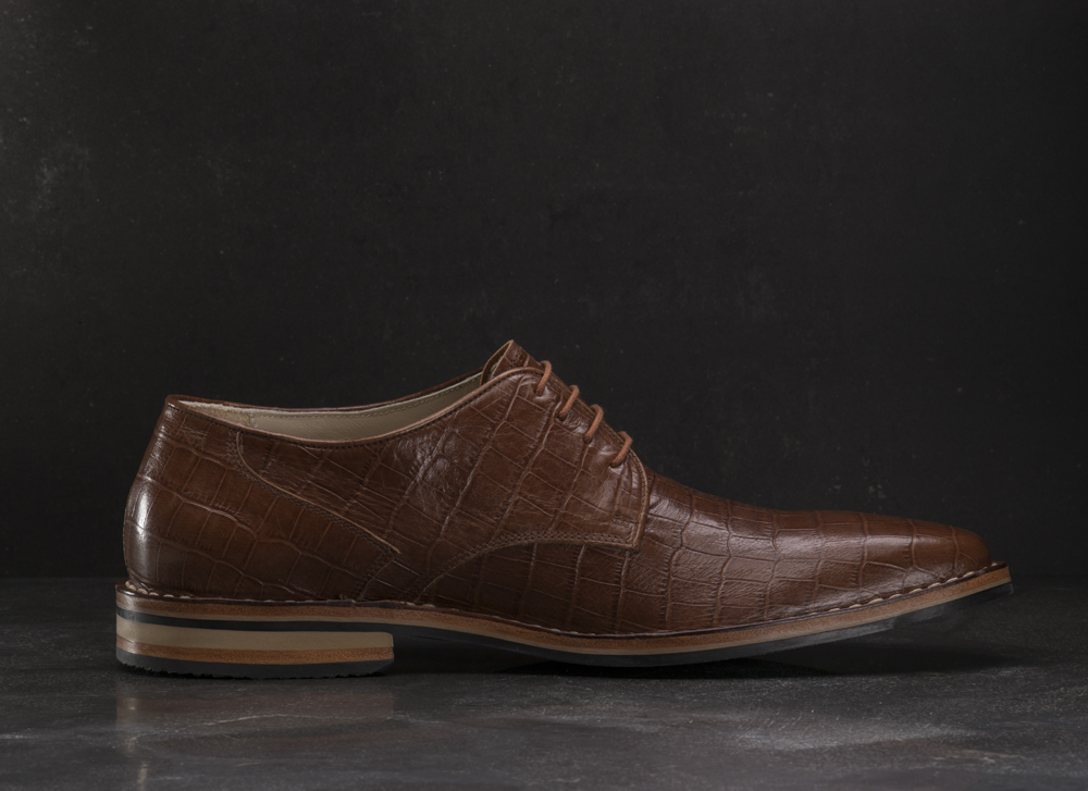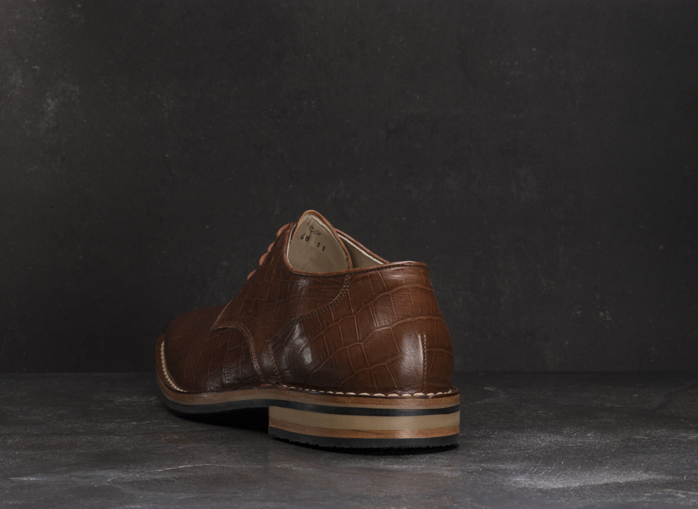 De schoen is afgewerkt met bruin fantasie krokodil print leer en wordt voorzien van een comfortabel voetbed.