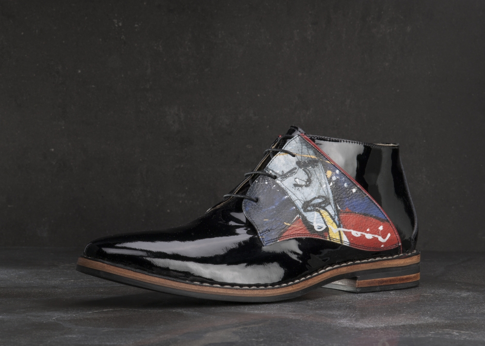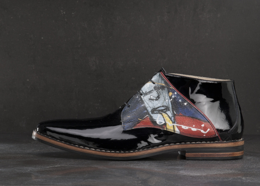 Herman Brood zijn unieke kijk op het leven leidde tot bijzondere kunstwerken. In samenwerking met Xandra Brood zijn een aantal van zijn kunstwerken verwerkt tot een exclusieve schoen. Met deze schoen van lakleer in combinatie met het kunstwerk Feestje, maak je hoe dan ook indruk op ieder feestje!