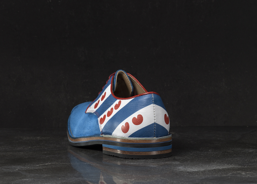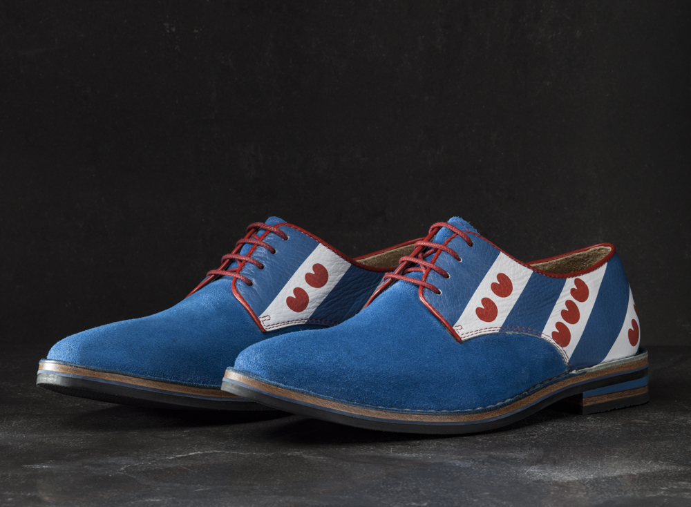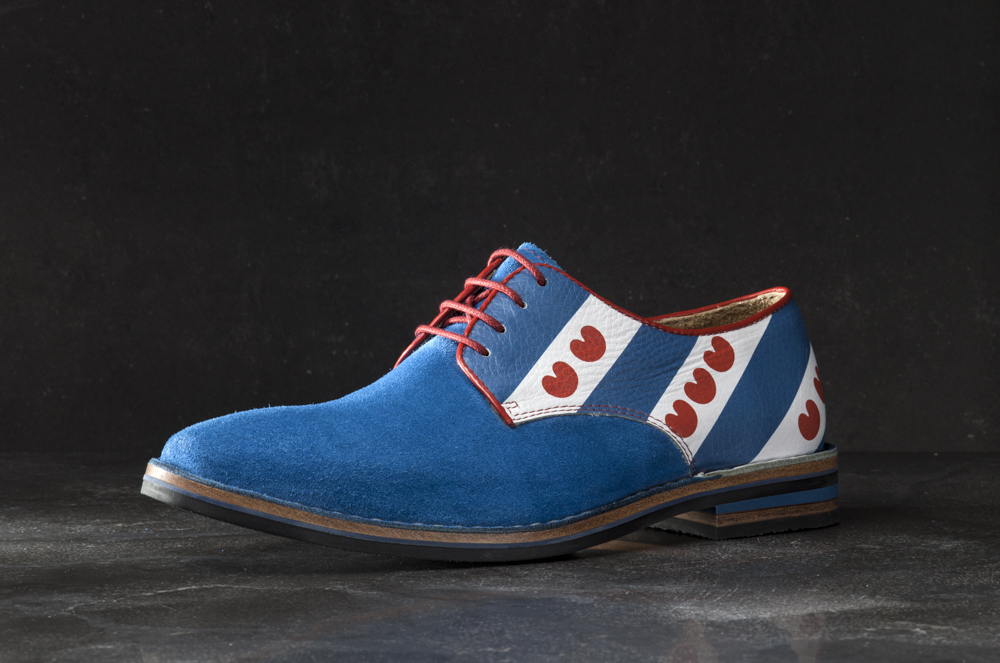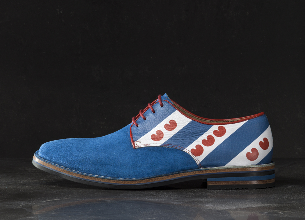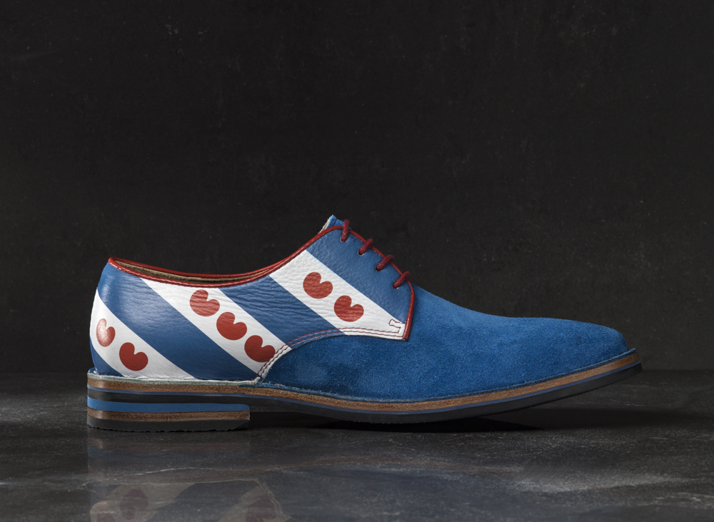 Deze opvallende schoen met Friese vlag print is voor de Frysk die grutsk is op Friesland. De blauwe kleur uit de Friese vlag combineert heel erg fraai met het blauwe kwaliteitsleer. De schoenen zijn voorzien van een comfortabel voetbed.