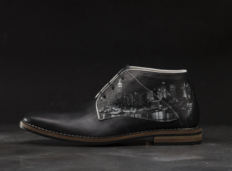 Deze Unieke Shoot met een print van de skyline van New York geef je nog meer het gevoel van een wereldburger. De schoen is afgewerkt met zwartkwaliteitsleer en met een uitstekende pasvorm