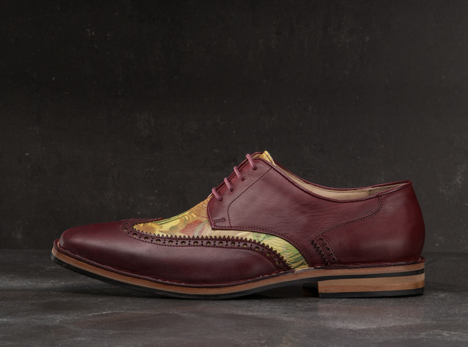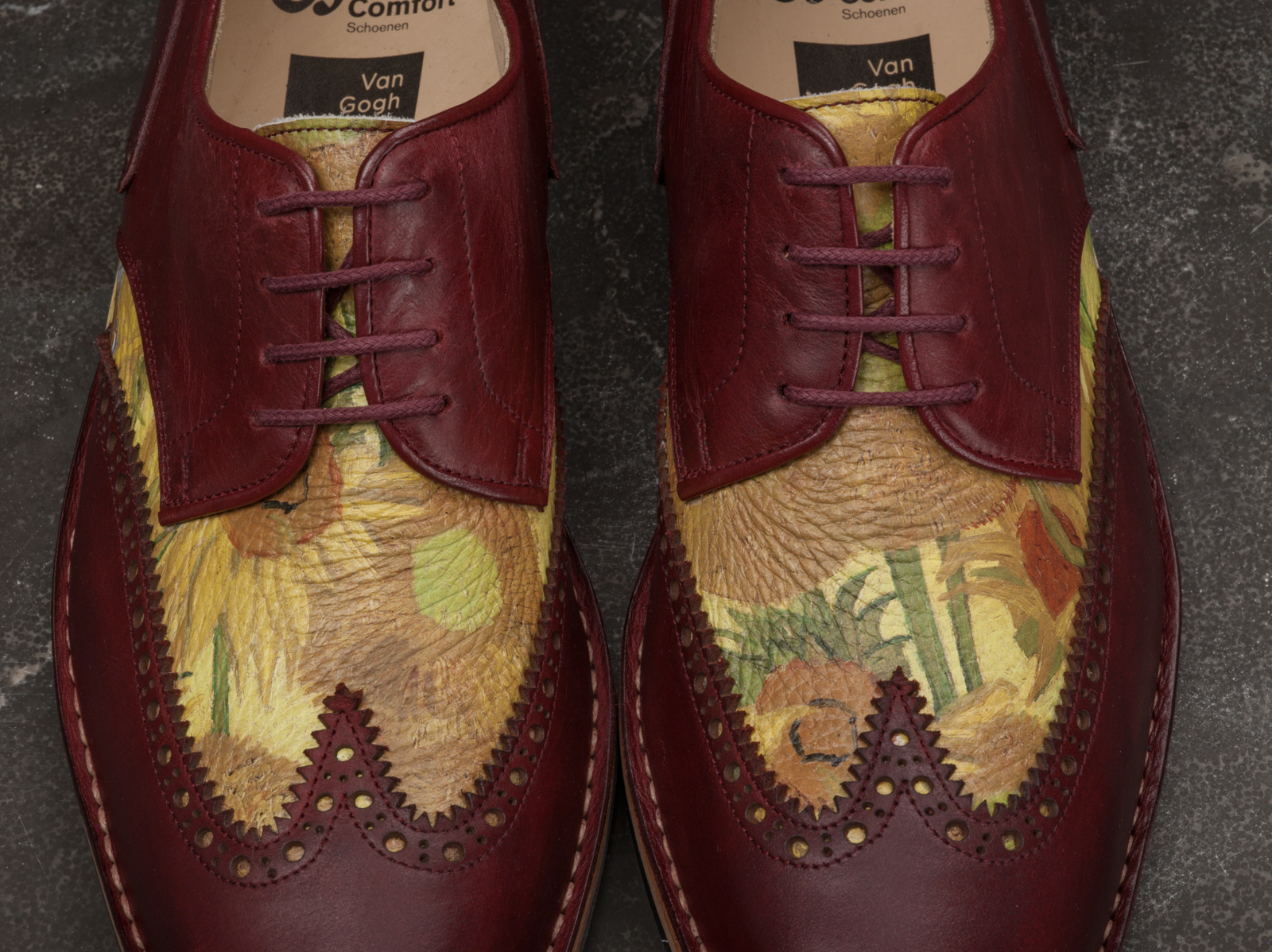 In samenspraak met het Van Gogh Museum is deze exclusieve schoen met een print van Zonnebloemen ontworpen. Dit wereldberoemde werk van Vincent van Gogh, uit de serie stillevens, kan nu worden bewonderd aan de voeten van de echte kunstliefhebber. Opmerkelijk is dat de positionering van het kunstwerk op de linker en rechter schoen verschilt, waardoor je twee unieke schoenen draagt.