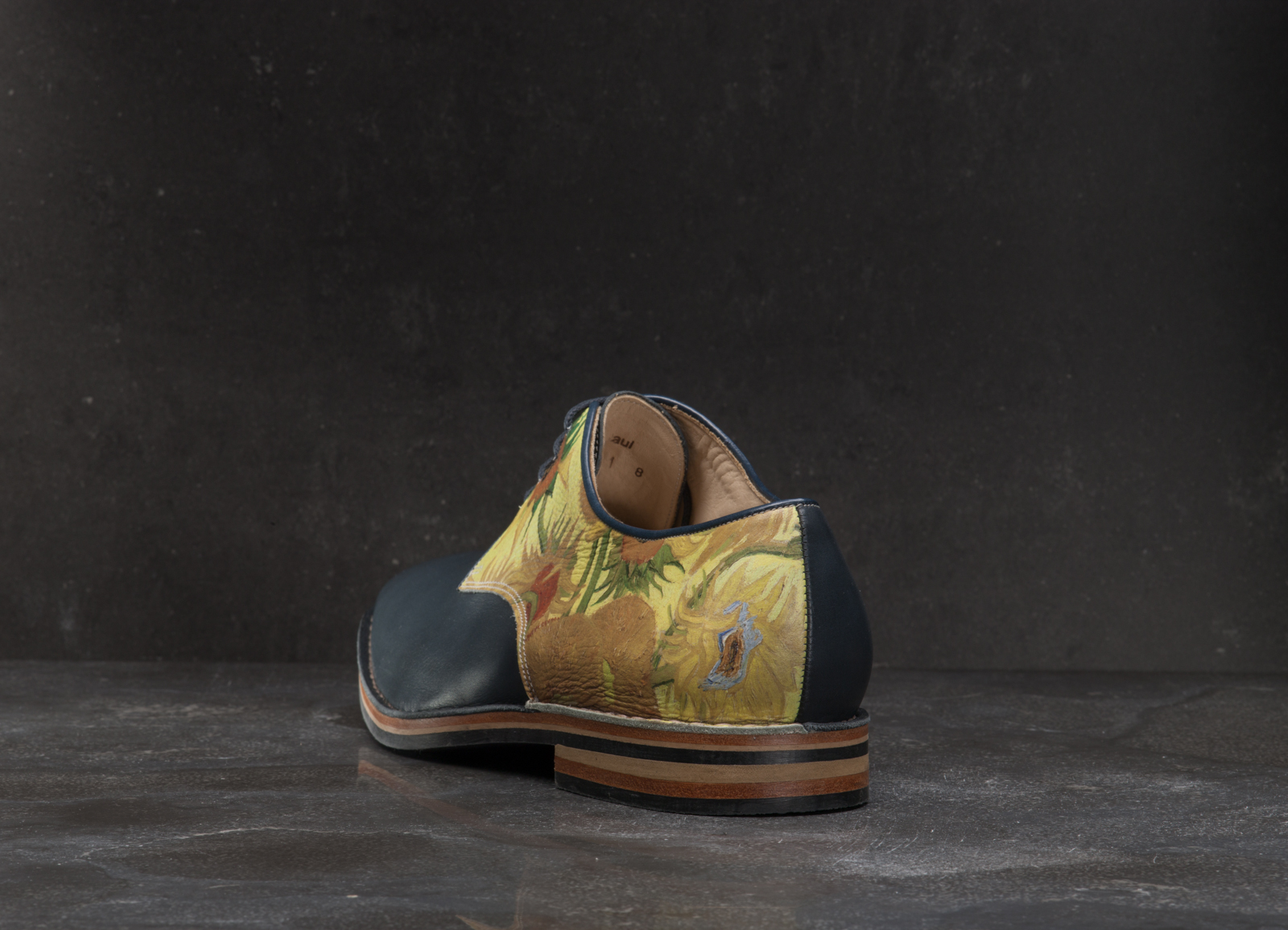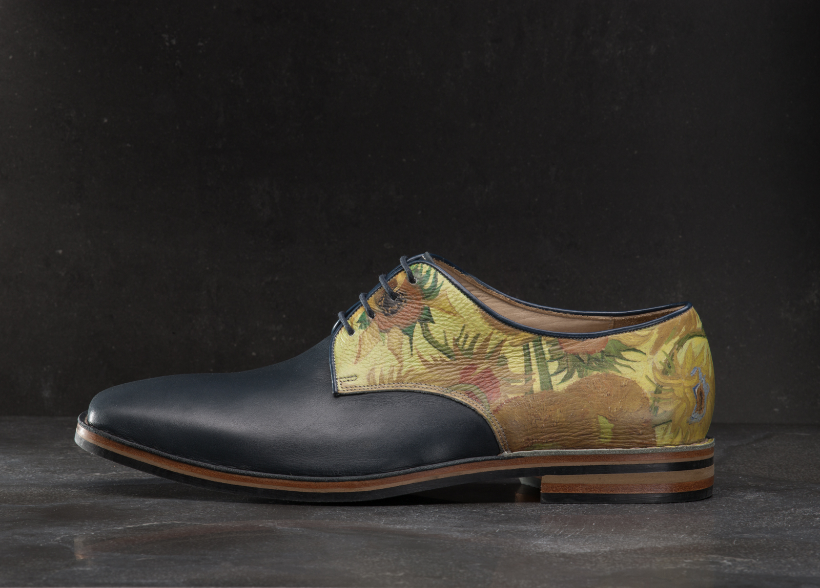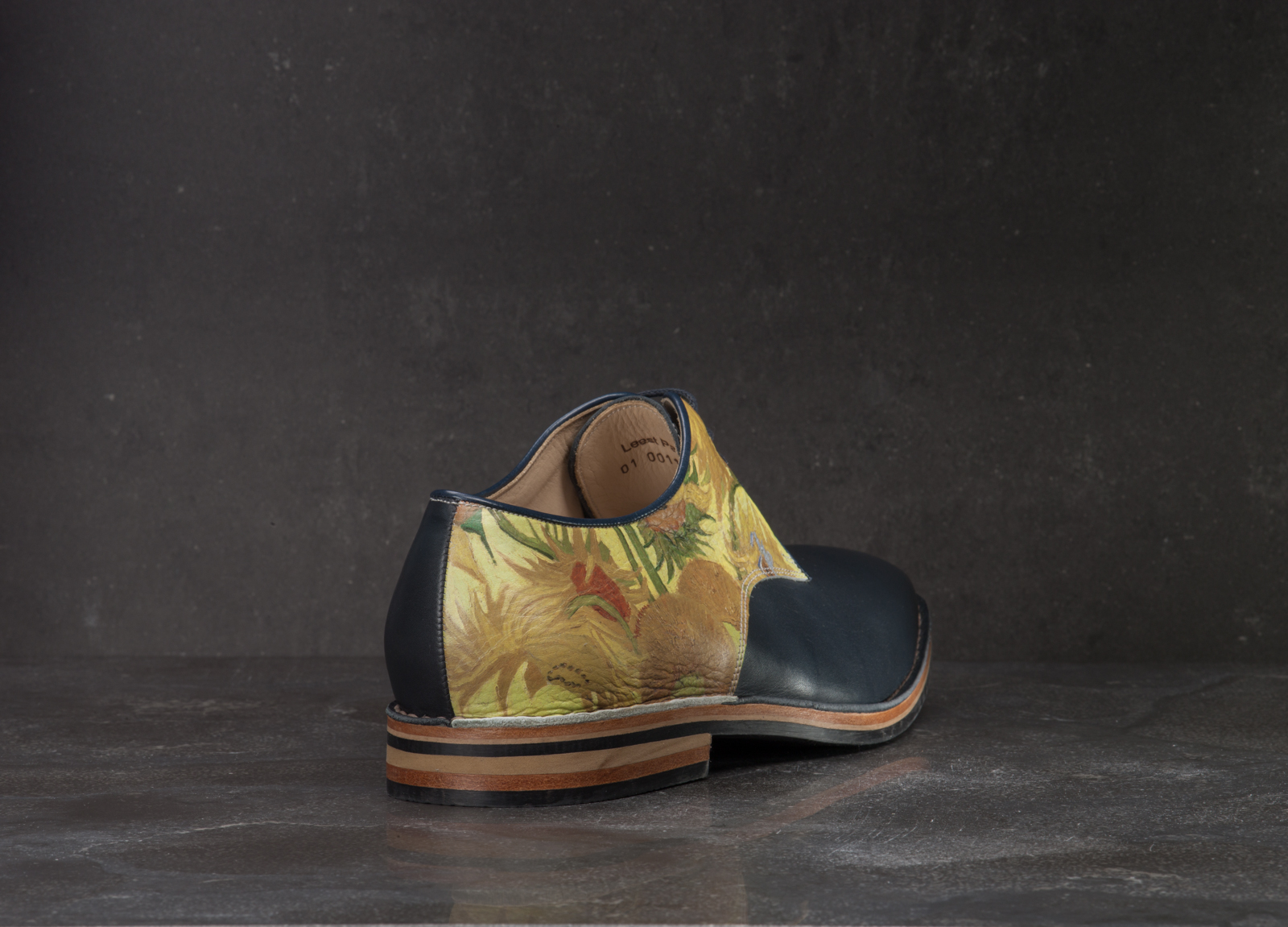 In samenspraak met het Van Gogh Museum is deze exclusieve schoen met een print van Zonnebloemen ontworpen. Dit wereldberoemde werk van Vincent van Gogh, uit de serie stillevens, kan nu worden bewonderd aan de voeten van de echte artistiekeling. Opmerkelijk is dat de positionering van het kunstwerk op de linker en rechter schoen verschilt, waardoor je twee unieke schoenen draagt.