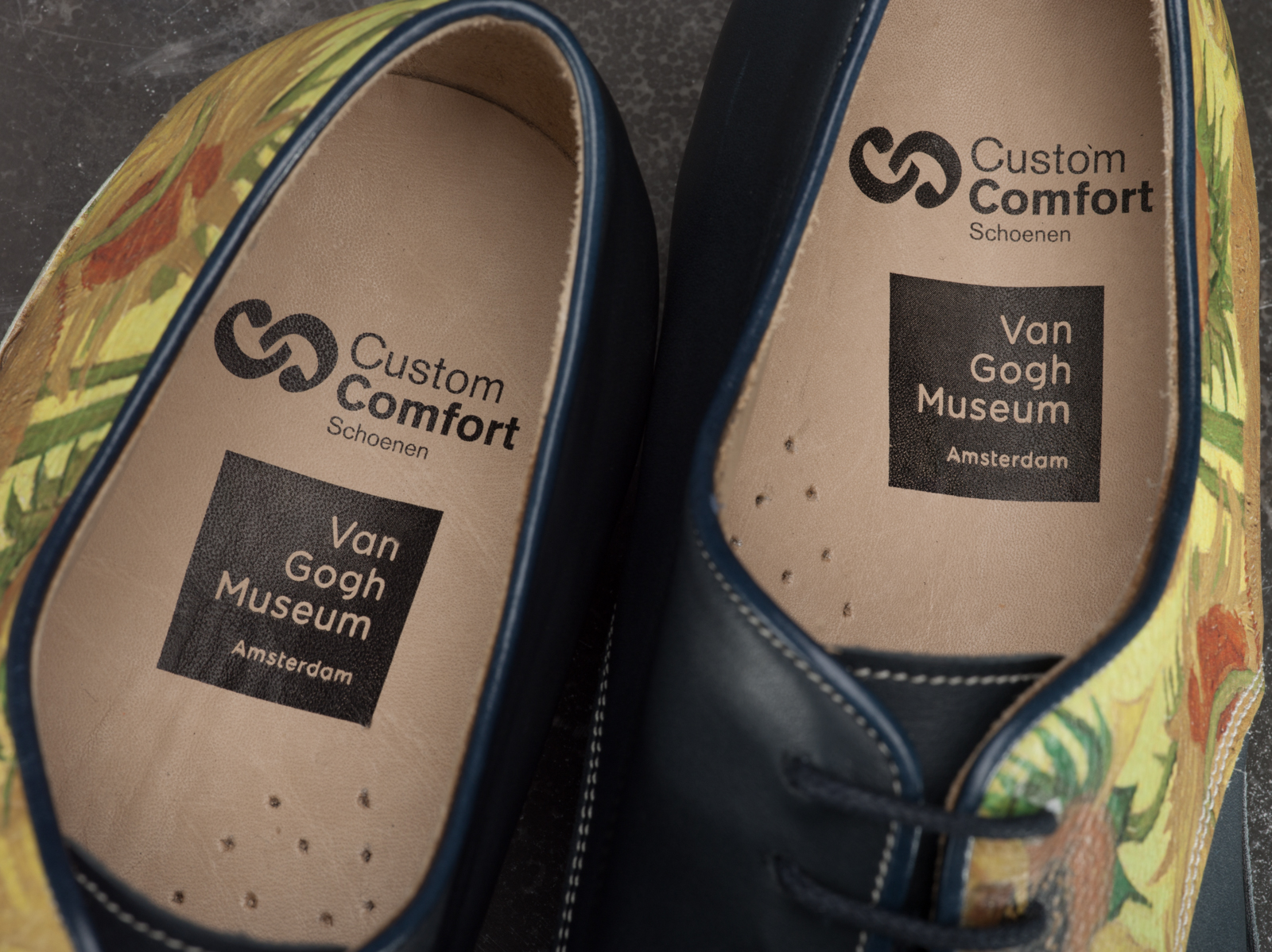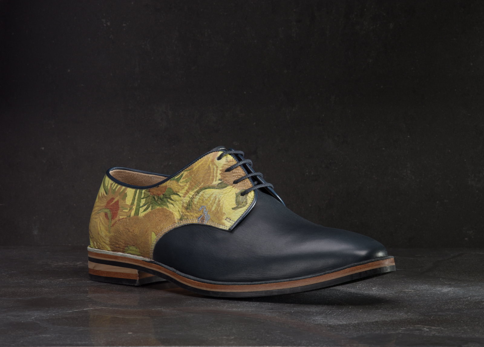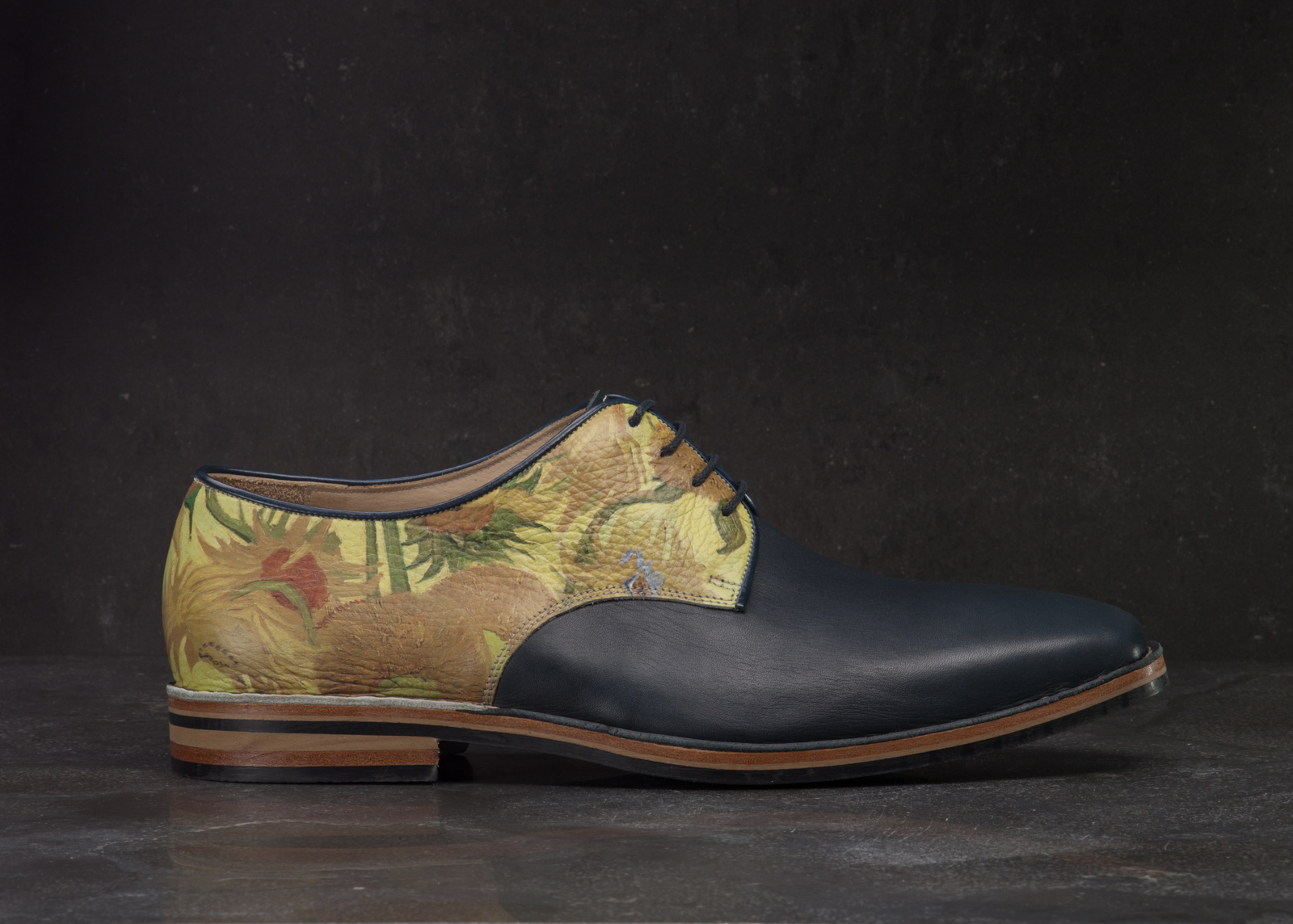 In samenspraak met het Van Gogh Museum is deze exclusieve schoen met een print van Zonnebloemen ontworpen. Dit wereldberoemde werk van Vincent van Gogh, uit de serie stillevens, kan nu worden bewonderd aan de voeten van de echte artistiekeling. Opmerkelijk is dat de positionering van het kunstwerk op de linker en rechter schoen verschilt, waardoor je twee unieke schoenen draagt.